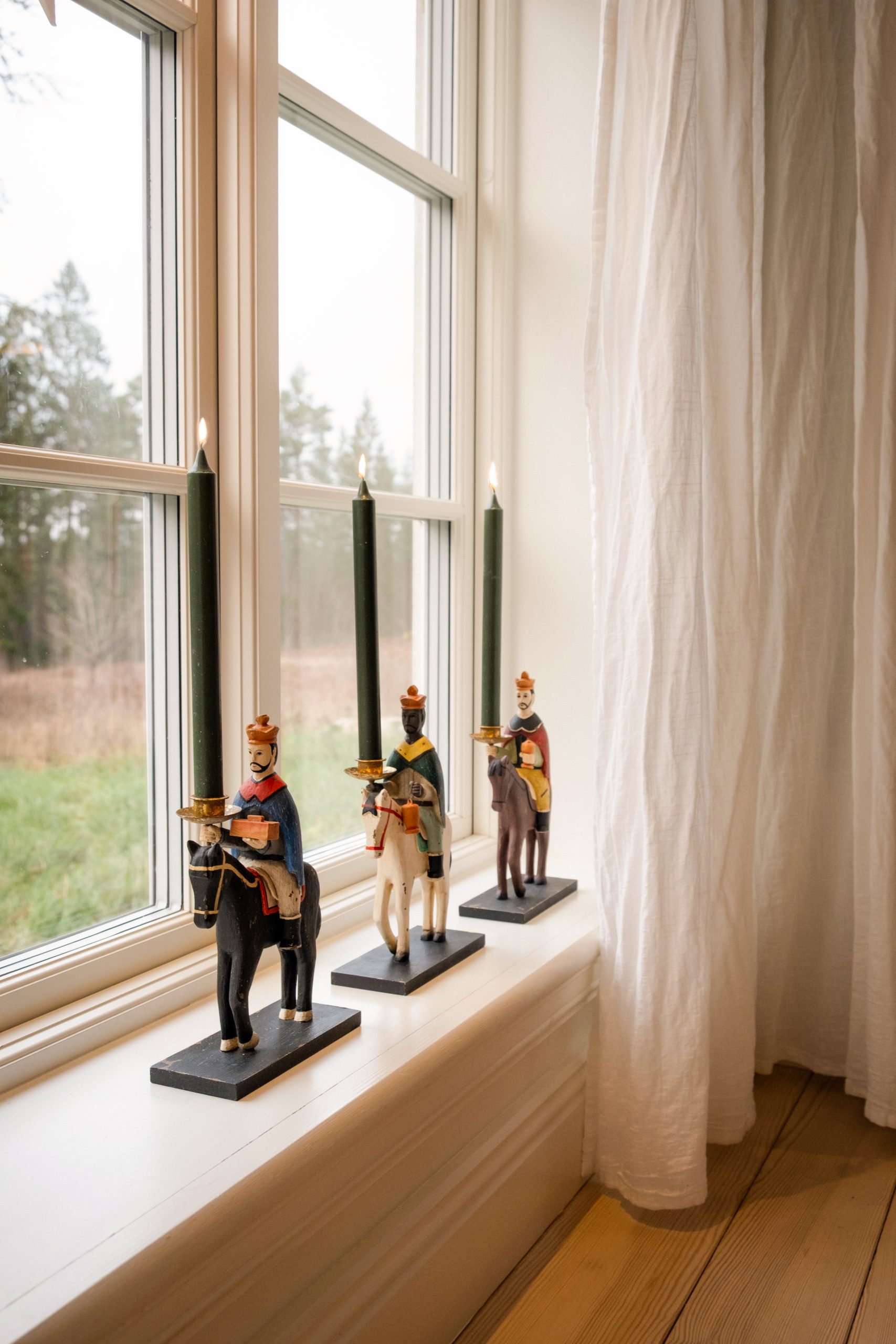 De tre vise männen-ljushållare och kronljus kommer från Spakarps plantskola.